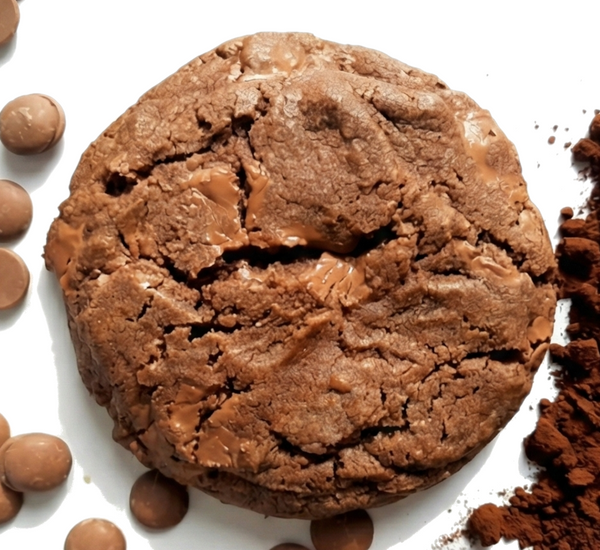 Biscuit mare, delicios, crocant pe exterior, moale in interior, cu foarte multa ciocolată si cacao aromat, intens. Ambalat individual.
